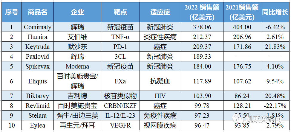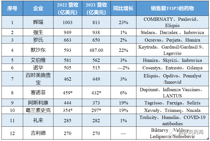 随着全球药企陆续披露2022年年报,营收情况和畅销药种类的排名也相应发生变化。