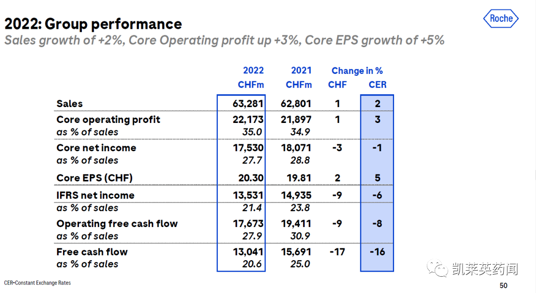 2月2日,罗氏公布2022年业绩,全年总营收633亿瑞士法郎(约合663亿美元),同比增长2%(按固定汇率算)。其中,制药业务收入456亿瑞士法郎(约合477亿美元),同比增长2%;诊断业务177亿瑞士法郎(约合186亿美元),同比增长3%。在制药领域,增长明显的是神经科学(78亿瑞士法郎,+20%)、血友病A(38亿瑞士法郎,+27%)、眼科(16亿瑞士法郎,+14%);肿瘤板块营收200亿瑞士法郎,同比持平;下滑明显的是免疫板块(72亿瑞士法郎,下滑了14%)。受专利到期、生物类似药竞争等因素影响,近几年罗氏三大王牌药物MabThera(美罗华)、Herceptin(赫赛汀)和Avastin(安维汀)的营收处于下降状态,Tecentriq(泰圣奇)、Perjeta以及Kadcyla(赫赛莱)有望成为其肿瘤学领域的新三驾马车。此外,罗氏肿瘤领域还有64条研发管线,涉及多种技术平台,包括小分子、单抗、双抗、融合蛋白、ADC疗法等。未来皆有望为罗氏提供新的业绩增长点。