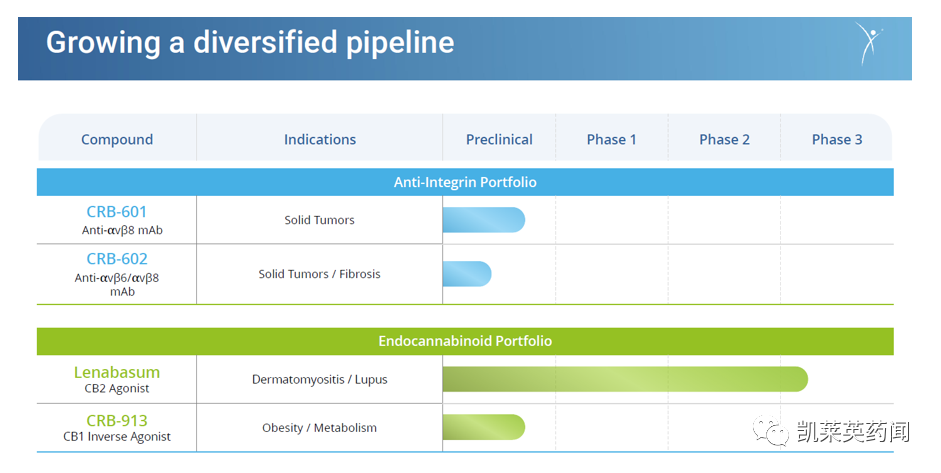 公司的研发管线中,大部分产品处于临床前阶段,仅一款进入三期的产品Lenabasum,不过遗憾的是公司在2021年7月宣告LenabasumIII期研究数据未达到主要终点。