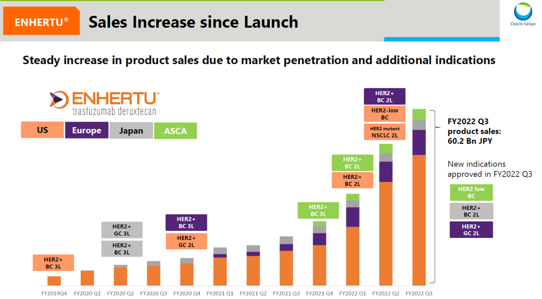 HER2靶点,Perjeta销售额46.75亿美元,Kadcyla销售额23.89亿美元,Herceptin销售额23.73亿美元,Phesgo销售额8.01亿美元,Enhertu销售额12.60亿美元,合计销售额115亿美元。