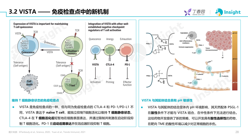 VISTA 是免疫检查点的一种,表达于 naïve T cell,能独立抑制 T 细胞活化以维持 T 细胞静息状态。VISTA 靶向的项目以抗体类为主,有少部分化药项目,但 Curis 的化药项目目前进度最高,为临床 II/III 期。国内思坦维,昂科免疫,天光实的项目目前均处于临床前阶段,且均为抗体类产品。