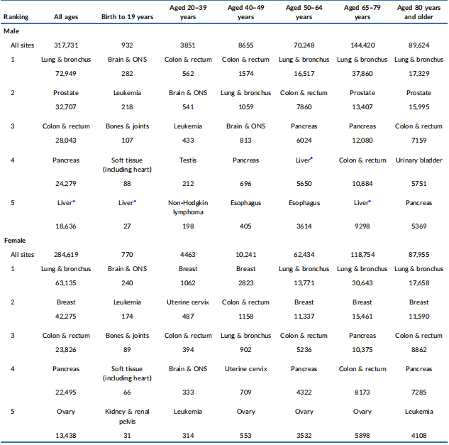 2020年,美国共记录了3,383,729例死亡,比2019年增加了528,891例死亡, COVID - 19感染是引起死亡增长的三分之二的根本原因。2020年,癌症占所有死亡人数的18%,仍然是仅次于心脏病的第二大死亡原因。乳腺癌是40-79岁女性和60-79岁男性死亡的主要原因,大脑和其他神经系统肿瘤是20岁以下儿童和青少年癌症死亡的主要原因。在20-39岁的男性中,结直肠癌已超过脑瘤,是20-49岁男性癌症死亡的主要原因,而在该年龄组的女性中,乳腺癌则是主要死亡原因。尽管宫颈癌是最可预防的癌症之一,但它始终是20至39岁妇女癌症死亡的第二大原因。肺癌是50岁及以上男性和女性癌症死亡的主要原因,造成的死亡人数远远超过乳腺癌、前列腺癌和结直肠癌的总和。