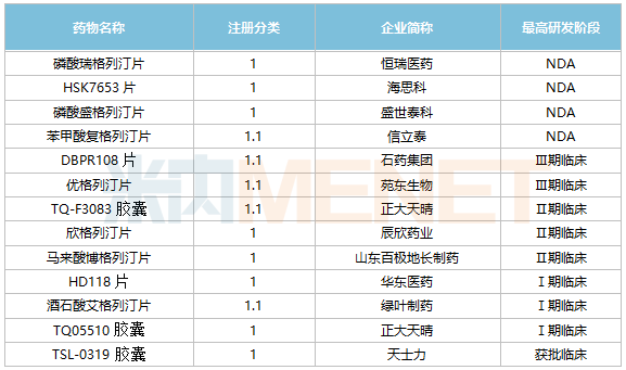 DPP-4抑制剂1类新药(不含复方制剂)研发进展