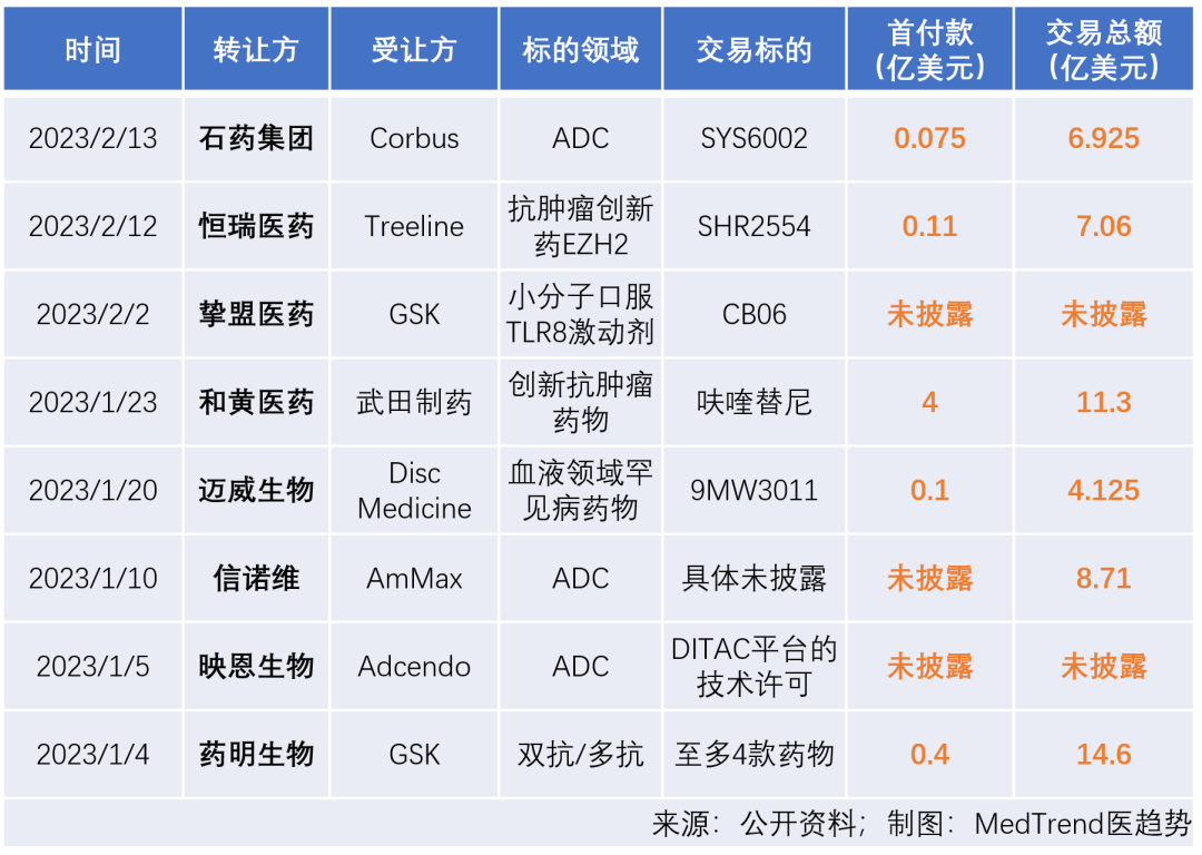 ▲2023年开年以来中国药企达成的License-out交易