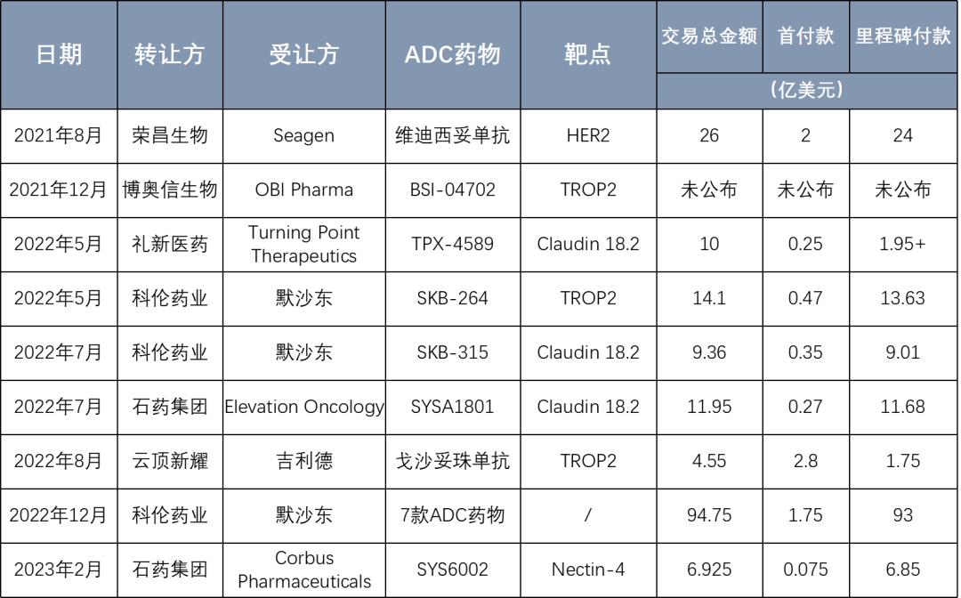 12月,交易总额超94亿美元7种不同在研临床前ADC的授出;