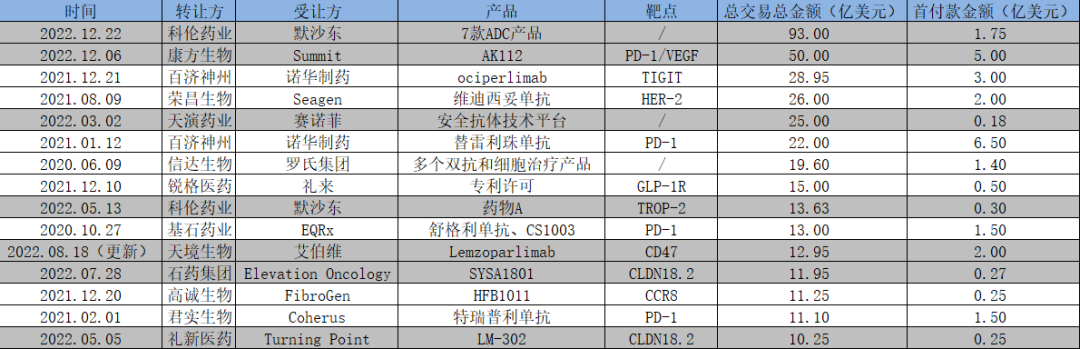 ▲2022年我国创新药License out交易TOP10 数据来源:康橙投资、公开信息