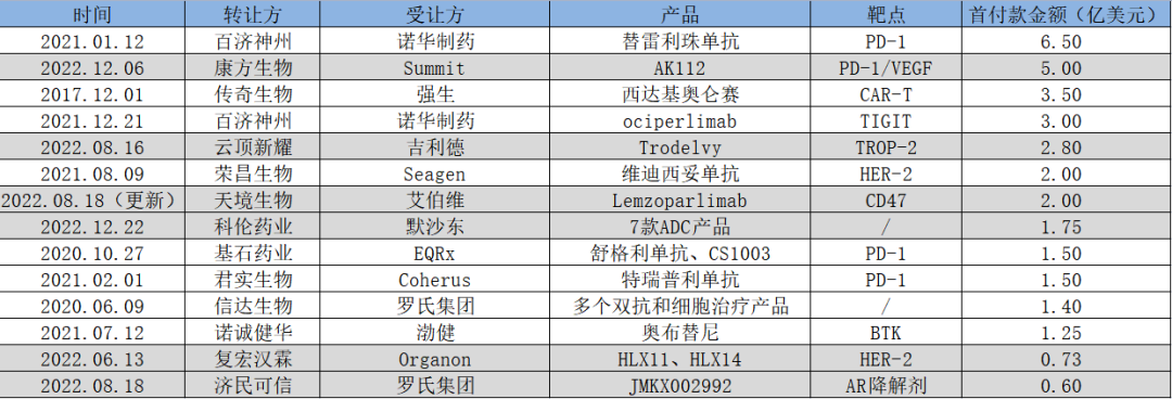 再往前,2021年,荣昌生物与Seagen关于靶向HER2的维迪西妥单抗总额26亿美元的交易也是赫赫有名。