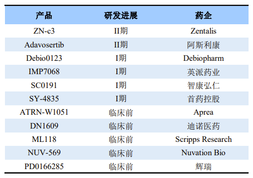 由于TP53突变在多种癌症中普遍存在,因此Wee1抑制剂具有巨大的市场潜力,目前在研的Wee1药物有十余种。