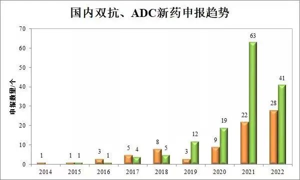 自2019-2020年以来,ADC药物研发热潮兴起,国内研发管线数量2021-2022年出现爆发式增长。截至目前,NMPA已经受理的超过80款ADC新药。