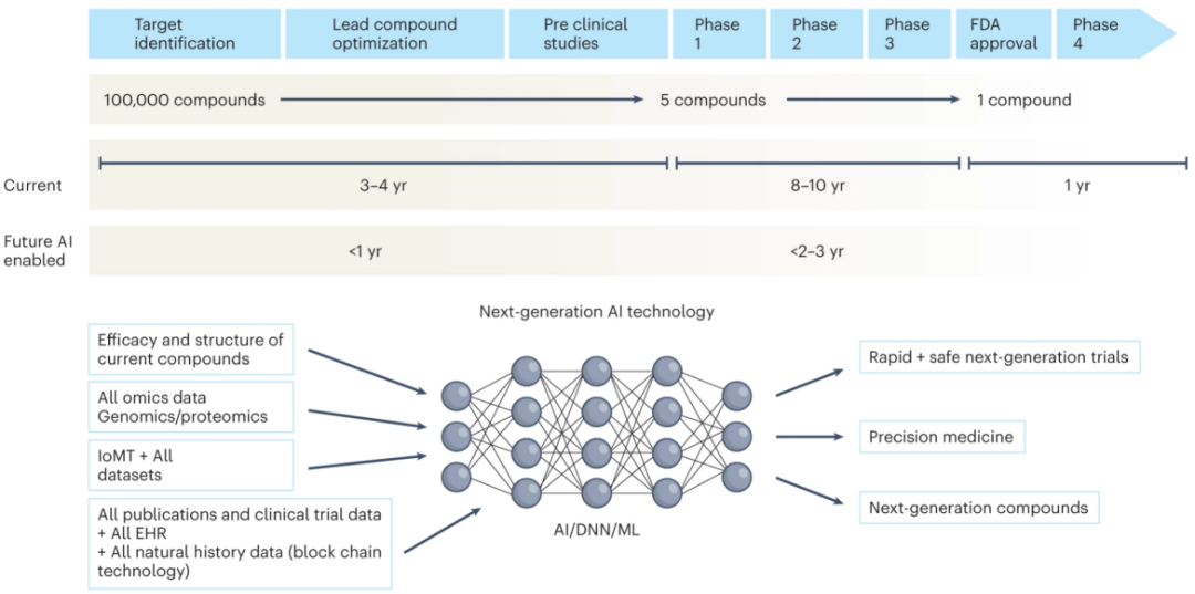 临床试验研究流程的庞杂同样意味着我们有足够的机会去锁定那些拖慢速度的黑洞。意识到特定的环节的瓶颈后,结合人工智能(AI)的强大网络,通过端到端的流程设计,完全有可能将临床试验周期缩短数月乃至数年。