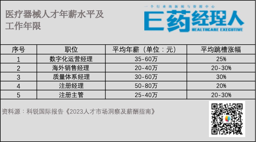 但整体薪酬水平,医疗器械的热门岗位不及其他几个领域“卷”,由于集采、疫情等因素的影响,医疗器械板块的薪酬涨幅较去年无明显变化。尽管跳槽平均涨幅也在20%~30%,但年薪最高的注册经理年薪也仅在50万~80万元。