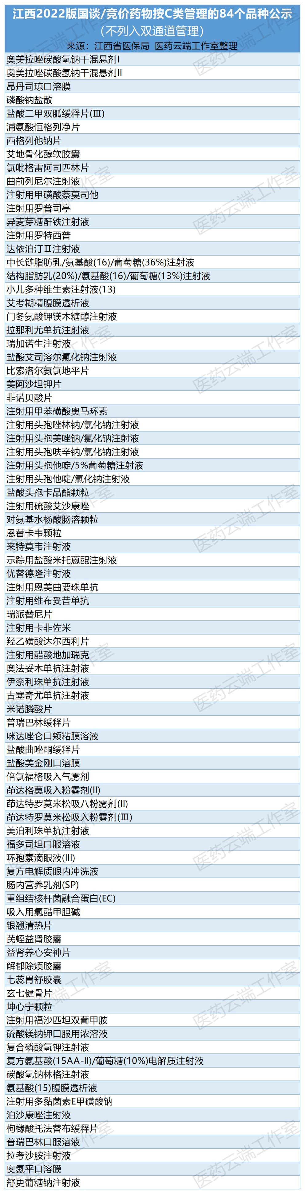 84个药品按C类管理,不纳入江西省双通道管理范围;
