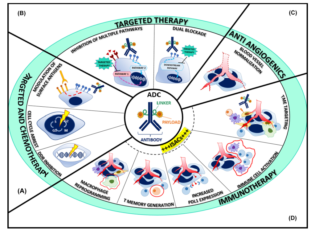 ADC不仅可以针对癌细胞,还可以调节TME的成分,如免疫细胞或成纤维细胞,从而改变免疫反应性。为了达到这种预期的效果,已经对ADC的有效载荷和抗体部分进行了修改。