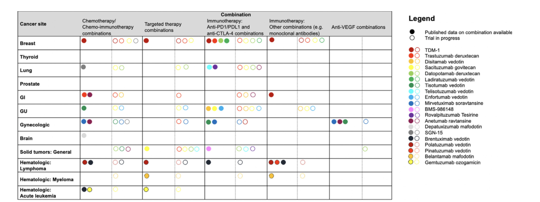 图2. 已公开或正在开发的基于ADC的联合治疗