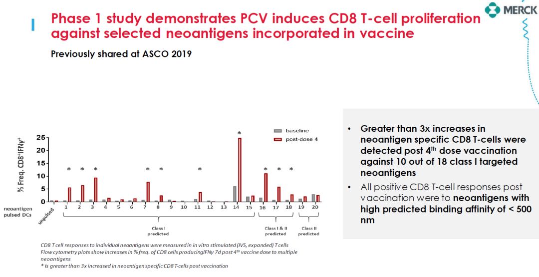 mRNA-4157在一期临床中证明可以诱导新生抗原特异性CD8 T细胞的增殖。