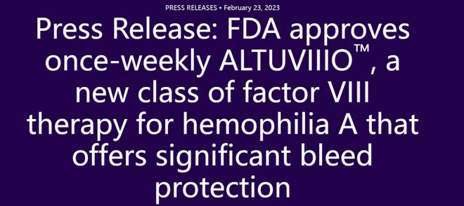 2月23日,赛诺菲宣布,FDA已批准A型血友病治疗药物Efanesoctocog alfa的生物制品许可申请(BLA),这是一种first-in-class高持续性的凝血因子VIII替代疗法。