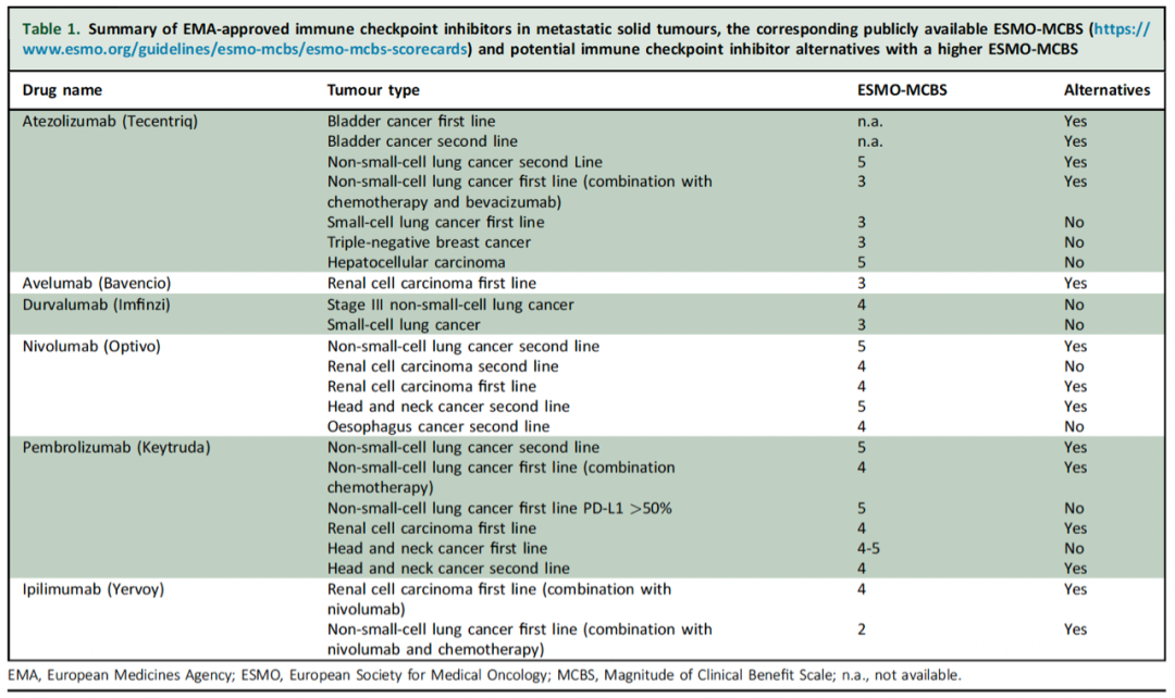 ICIs在转移性实体瘤中的ESMO-MCBS评估结果