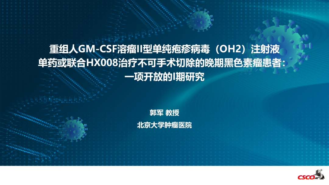 在去年11月举行的第25届全国临床肿瘤学大会暨2022年CSCO学术年会上,OH2注射液的临床试验主要研究者(Principal Investigator,PI),北京大学肿瘤医院郭军教授在创新药物临床研究数据专场做报告,对OH2注射液临床疗效给予了高度肯定。