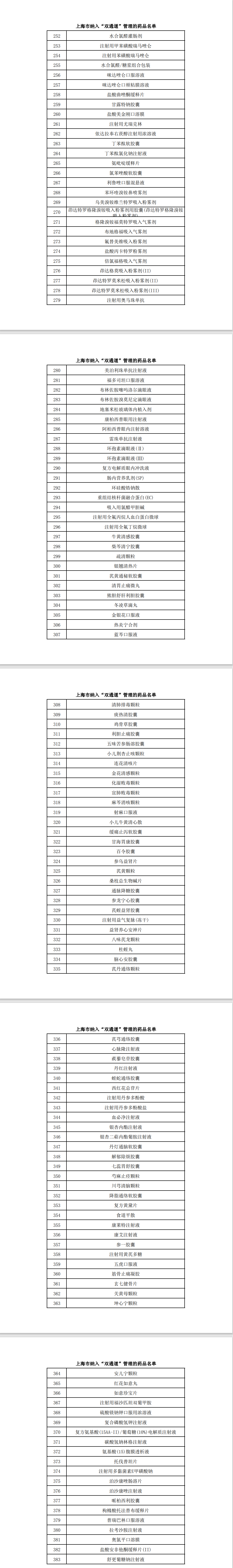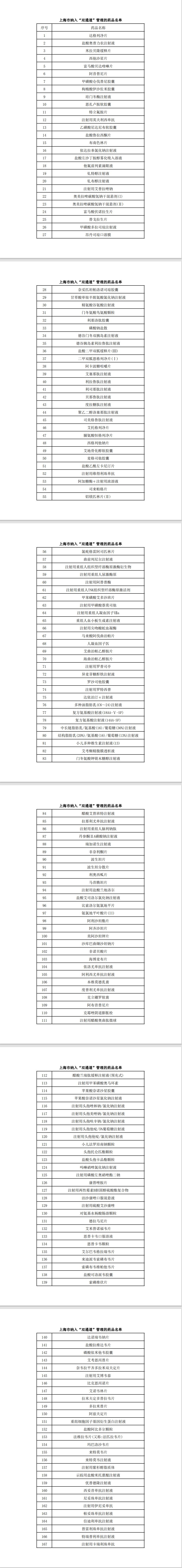 (以下为上海本次公布的“双通道”管理药品名单)