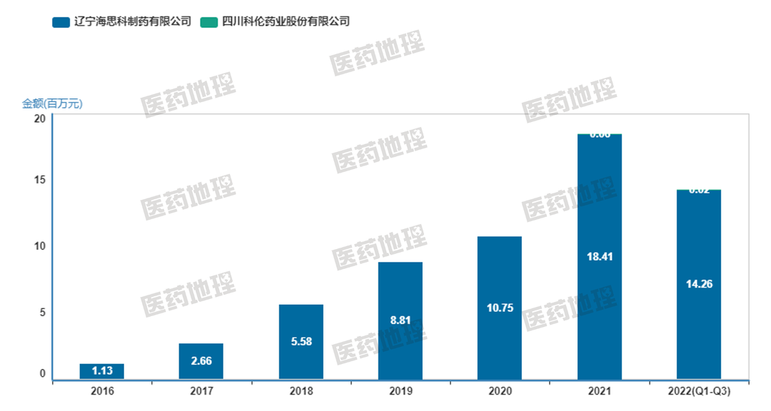 复方氨基酸(15AA-II)/葡萄糖(10%)电解质注射液,医保支付标准为115元(1000ml/袋),目前市面上仅有科伦药业(2020.8.17获批)和海思科制药(2015.4.29获批)两家企业上市,但海思科占有绝大多数市场。