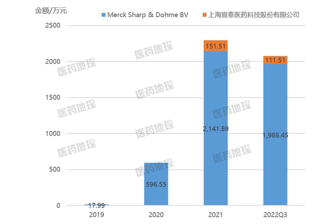 泊沙康唑肠溶片,医保支付标准为95元(100mg/片),目前默沙东(2018.12.7获批)和上海宣泰医药(2021.1.19获批),默沙东仍然占据主要市场,2022年前三季度销售额为1968.45万元。