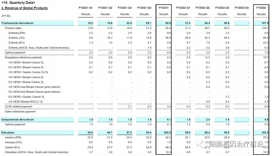 第一三共在季报中披露,2022自然年营收1616亿日元(12.38亿美元),同比增长超190%,(2021年约合4.26亿美元),增长显著。