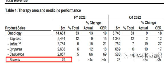 罗氏的Kadcyla稳坐市场第一位,2022年营收20.8亿瑞士法郎(22.88亿美元),同比增长7%,增速较去年的16%有所下滑。