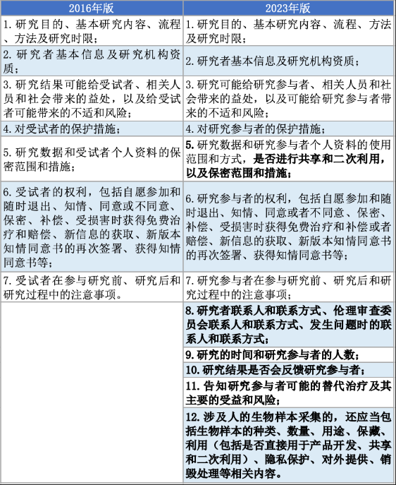• 知情同意内容要求增加