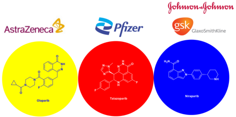 截至至今,在PARP抑制剂领域,阿斯利康与默沙东共同研发的Olaparib(商品名Lynparza)仍然是全球市场上最受欢迎的药品。2022年,阿斯利康Olaparib总收入29.93亿美元,是其肿瘤业务中的第二大单品,同比增长9%;默沙东Olaparib总收入11.16亿美元,同比增长13%。Olaparib去年拿下41.09亿美元的好成绩,占据了PARP抑制剂市场份额的60%以上,且在前列腺与胰腺癌适应症上独占鳌头。可以说Olaparib似乎已是一枝独秀,但留给阿斯利康与默沙东快乐的日子可能还未许久,尤其是在前列腺癌上,未来的挑战者已来势汹汹。辉瑞的弯道超车之路近日,美国临床肿瘤学会泌尿生殖系统癌症研讨会(ASCO GU)公布了三项 III 期研究数据,预示了PARP抑制剂联合抗雄激素药物在前列腺领域的激烈竞争。辉瑞的Talazoparib(Talzenna)和强生/GSK的 Niraparib(Zejula)正面入局,试图击败大幅领先,早早获批的前列腺癌适应症的阿斯利康Olaparib。