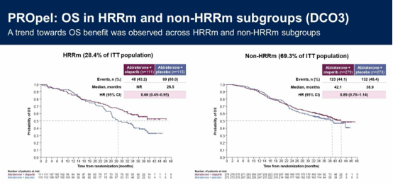 TALAPRO-2的数据显示当Talzenna + Xtandi疗法面对HRD阴性的患者时,PFS获益明显下降。除此之外,在对比Xtandi单独疗法与Talzenna + Xtandi联合疗法时,疾病进展风险降低27% (p<0.001),这种影响极有可能是由HRD阳性患者所驱动的(风险比0.46),尤其在那些HRD阴性的患者(风险比0.66)中更加明显。