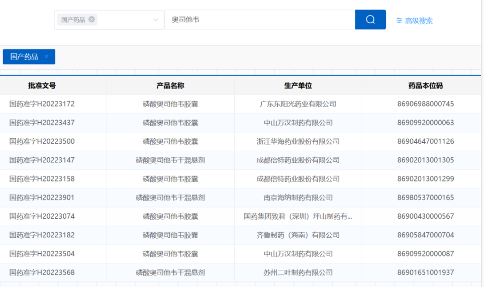 在药监局官网,奥司他韦已经获批的同类产品已有30款,涉及的药企有齐鲁制药、广东东阳光药业、四川科伦、南京海纳制药、华海药业等。