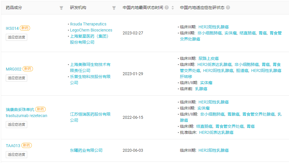国产 HER2 ADC 项目趋势