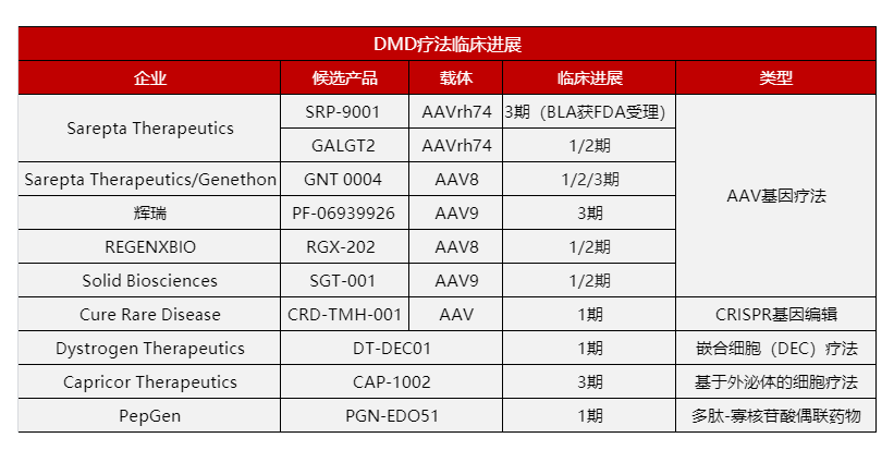 DMD是一种以进行性肌肉无力为特征的罕见致命性神经肌肉遗传病,患者一般在2~5岁时开始发病,20岁左右因心肌衰竭而死亡。据统计,全球平均每3500个新出生的男婴中就有一个患有杜氏肌营养不良。同时拥有罕见与遗传的两大特性,使得DMD更加难以治疗,药物研发也一度陷入困境,虽然目前已经涌现了一些资料手段,但仍然缺乏十分有效的治疗方法,而基因疗法给这种疾病带来了新的希望。