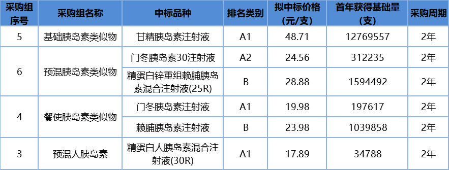 不过2021年第六批国家集采(胰岛素专项)的落地将打破这种局面。根据集采规则,同采购组内拟中选产品中,报价低的一半企业为A类,报价最高的企业为C类,其余企业为B类,未申报或未中选的产品为D类。入选A组价格最低的企业不仅可以按医疗机构对其报量的100%带量,并且,医疗机构还可通过自主选择将C类中选企业报量的30%作为增量分配给任意A类企业。对于未中选企业,其80%报量可被医疗机构分配给任意A类和B类企业,并且分配给A类企业的量应超过B类企业。