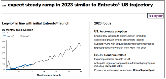 从放量速度来看,据诺华评估,Inclisiran 与沙库巴曲+缬沙坦(Entresto)放量速度基本一致,而后者 2022 全年销售额已达 46.44 亿美元,有望成为诺华的下一个核心增长点,市场潜力无限。