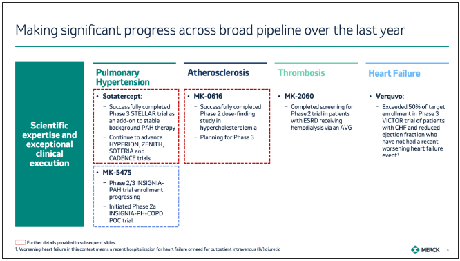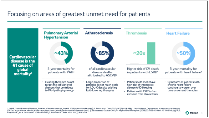 从领域细分来看,据 3 月 6 日投资者活动文档,默沙东将聚焦于肺动脉高压、动脉粥样硬化、血栓症以及心力衰竭这些患者需求未得到满足的领域。