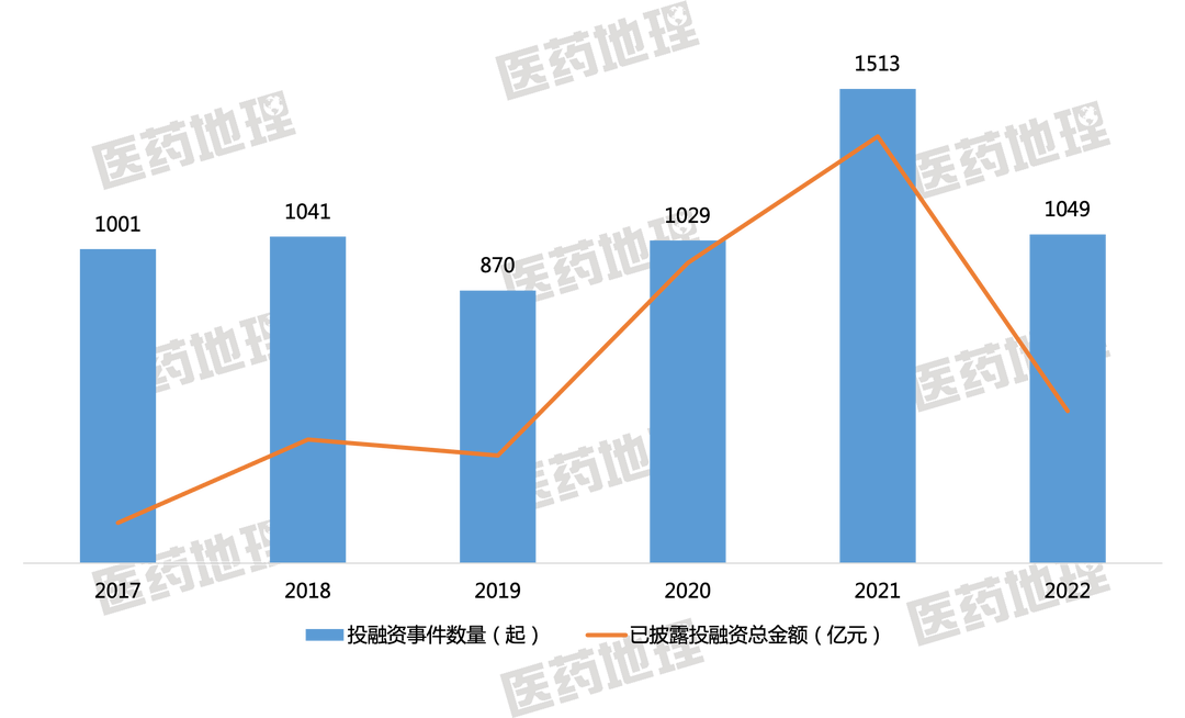 图2:2017-2022年国内医疗健康行业以及投融资概况