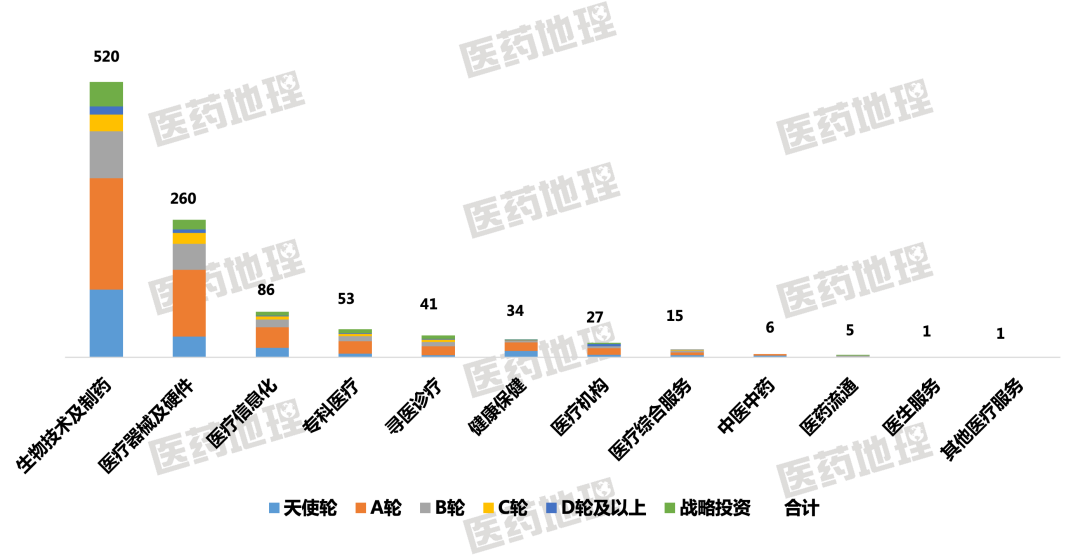 图1:2022年国内医疗健康行业一级市场投融资概况