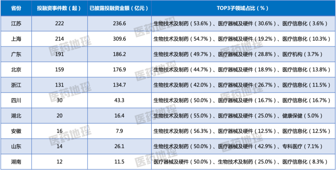 2022年国内医疗健康投融资热点区域