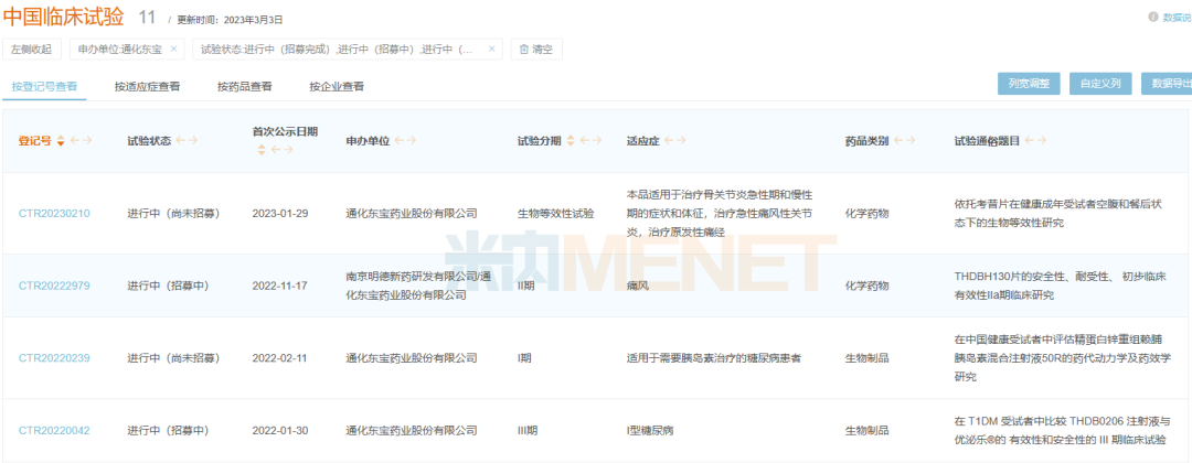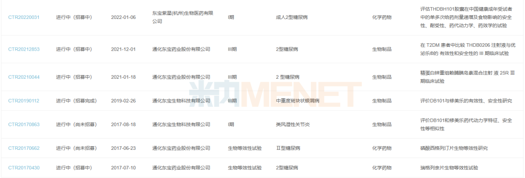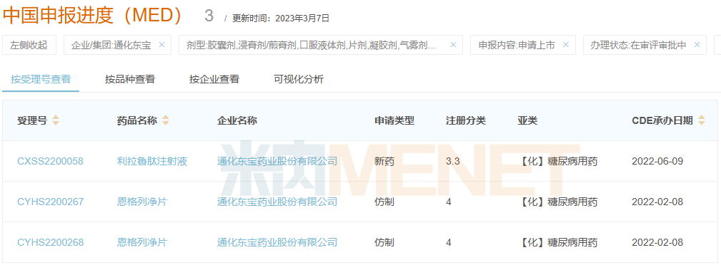 通化东宝产品报产在审情况