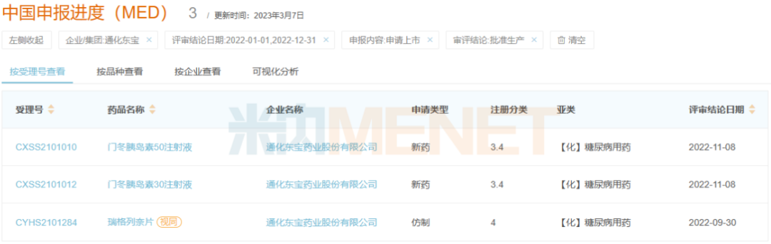 2022年通化东宝获批产品情况