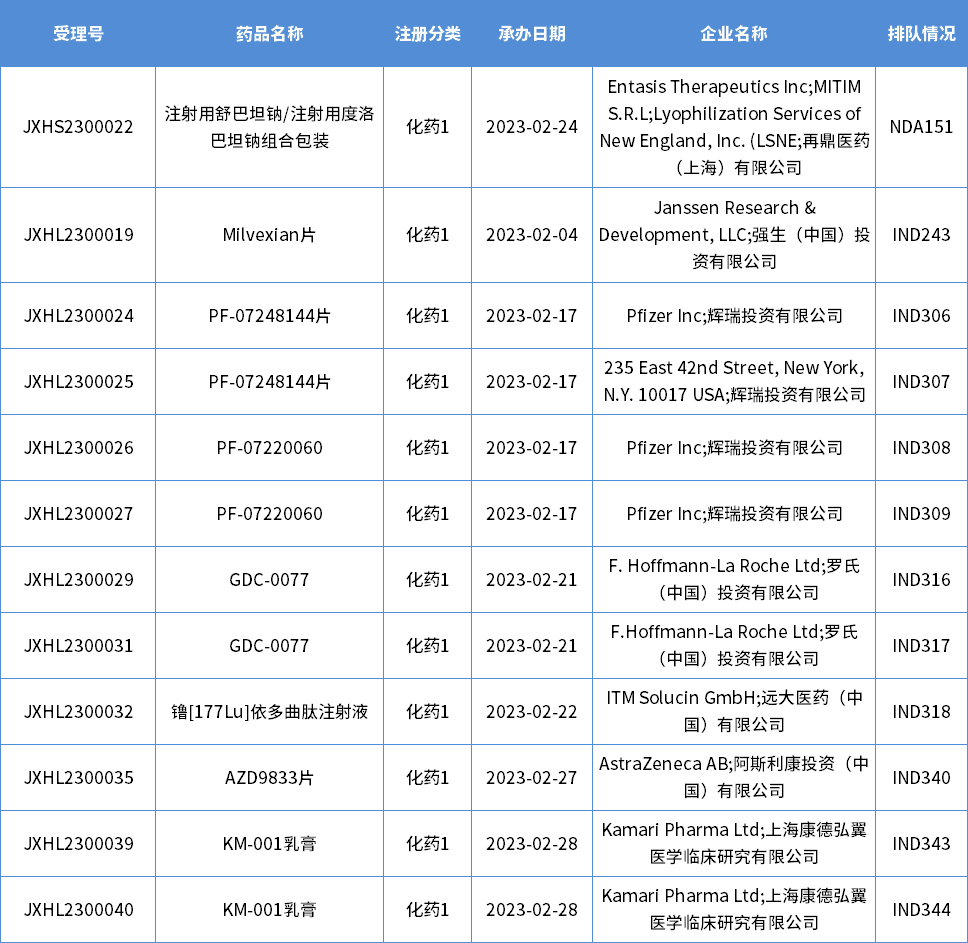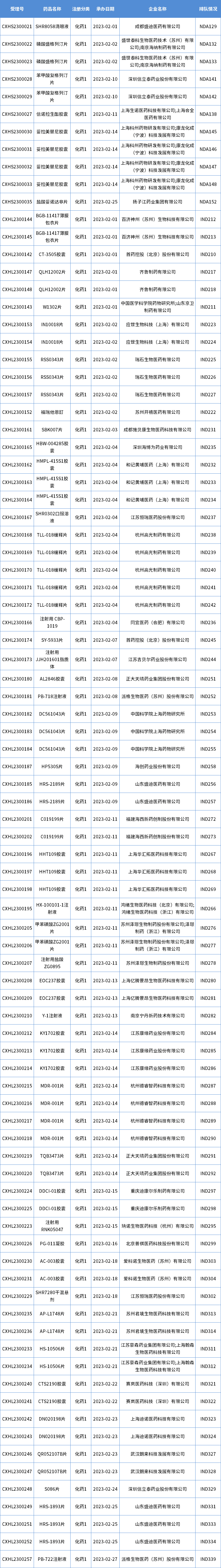 表一 2023年2月新承办的化药1类国产新药