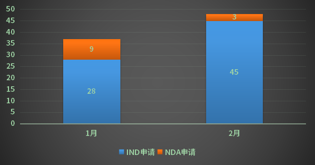 本月新增化药2类改良型新药48个(按受理号计),其中IND申请45个,NDA申请3个,共涉及33个品种;2023年1-2月CDE化药改良型新药申请受理情况详见图四。