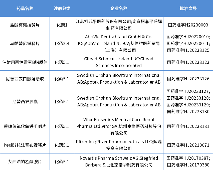 表三 2023年2月化药获批新药信息
