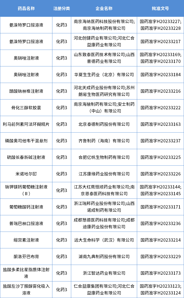 表四 2023年2月获批化药3类仿制药信息