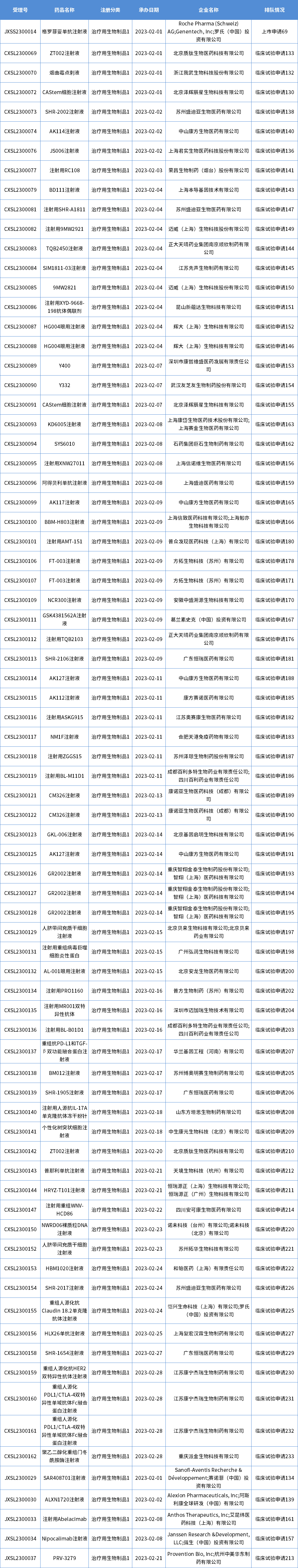 表七 2023年2月生物制品获批新药信息