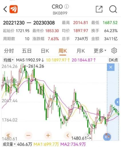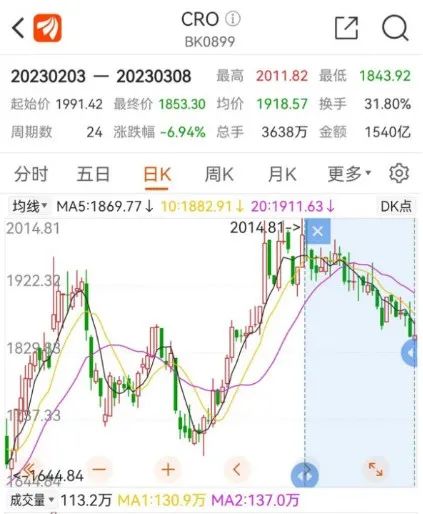 作为行业“卖水人”,据东方财富显示,近一个月内,仅仅以CRO领域为例,与最高点1991.42相比,截至今日收盘,CRO板块已跌至1853.3元,跌幅达6.94%。