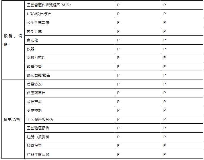 技术资料的转移本质上就是产品知识的转移,知识管理尤其重要,通常在组建转移小组后,由转出方及时提供给接收方。基于生命周期管理思路,不同阶段,可转移资料存在区别,国内制药企业对药品技术转移管理和实施的重视程度及规范性,较国外仍存在差距,尤其涉及重大项目或者国内外转移时,建议可参考ISPE指南列举的资料清单(针对商业化阶段,见下表2),提供相关等同性资料,资料提供的越全面,越利于技术转移实施。