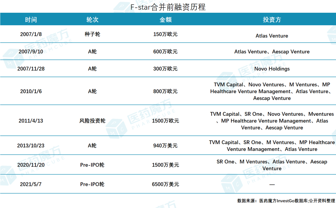 非上市公司F-star,是由位于英国剑桥的著名生物医药孵化器The Babraham Bioincubator Concept孵化的专注在双抗领域研发的创新公司,此前与多家跨国巨头合作,在合并前已经完成8轮合计1.37亿美元融资,是双抗领域的“当红辣子鸡”。