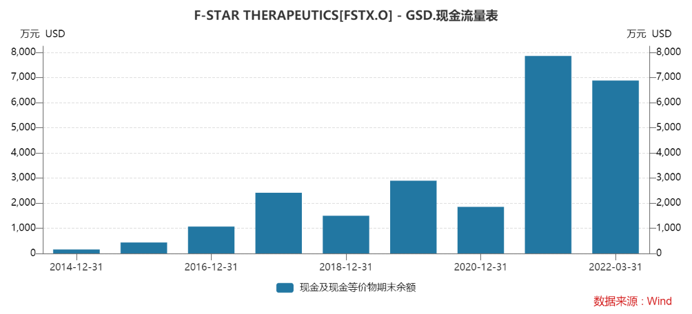 而F-star上市后再融资并不多,继2017年通过再融资募集了3750万美元,又于2021年5月10日通过再融资募集了6500万美元。截至2022年3月31日,F-Star的现金及现金等价物余额为6880万美元。